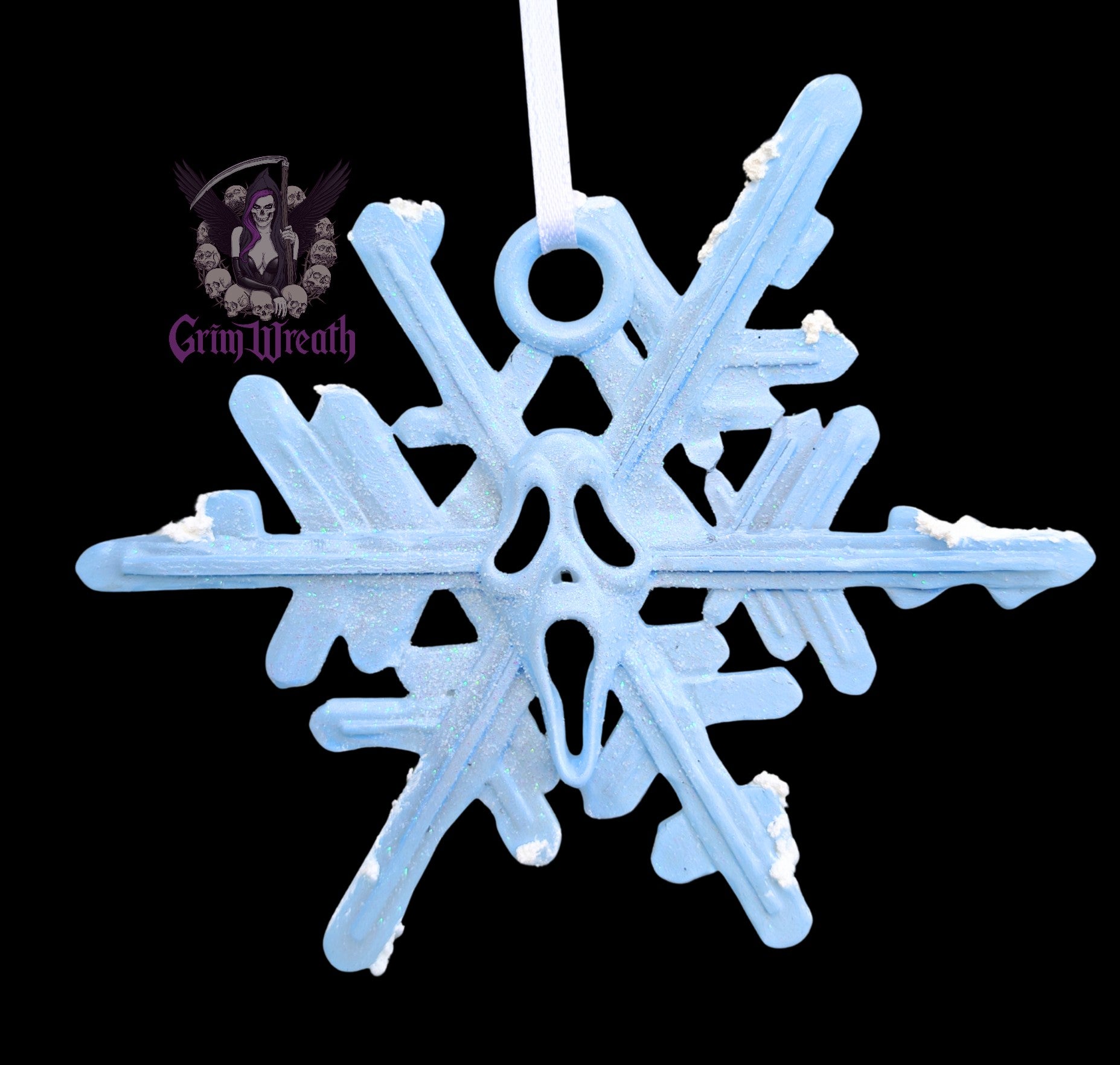 Slash up your holiday décor with our Ghost Flake Ornament — a terrifying twist on a winter classic. This hand-painted snowflake features blends horror and holiday cheer in one creepy-cute collectible. Perfect for horror lovers, tree trimmers, and fans who want their Christmas with a side of fear.