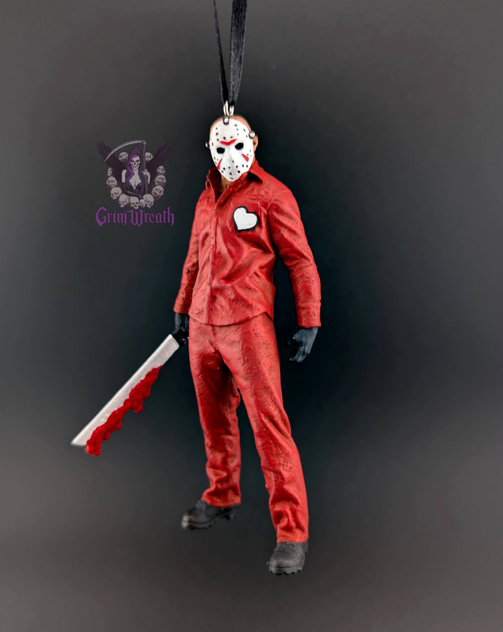 Love hurts—especially with our Momma's Boy ornament, featuring the iconic hockey-masked slasher with a darkly romantic twist, this piece blends Valentine reds with classic camp terror. Perfect for Valentine trees, horror displays, or year-round spooky décor, it’s a deadly little keepsake for fans whose hearts beat for Crystal Lake carnage. 🖤