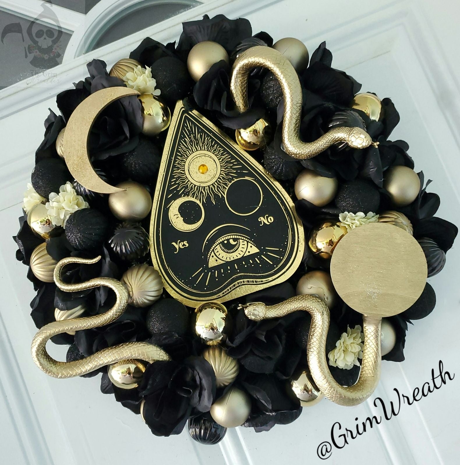 Each Grim Wreath is designed to be easily hung using a sturdy built-in wire or loop on the back.
