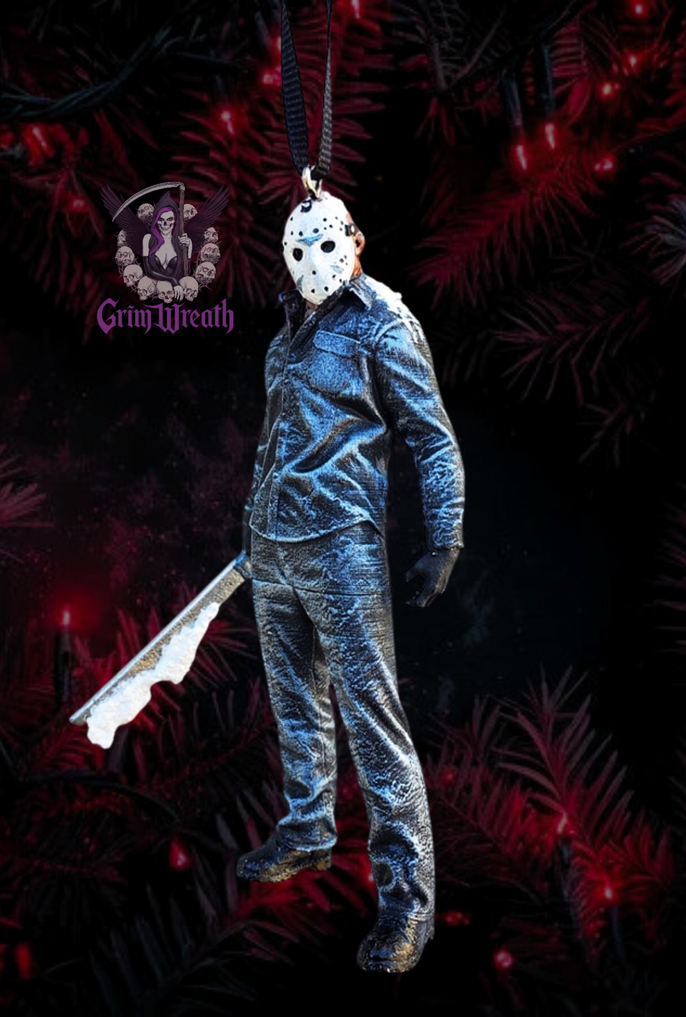 Bring some killer holiday cheer to your tree with this ornament, featuring everyone’s favorite slasher cutting his way through the season. A spooky-fun twist on Christmas décor, perfect for horror lovers who like their holidays a little bloody and bright!