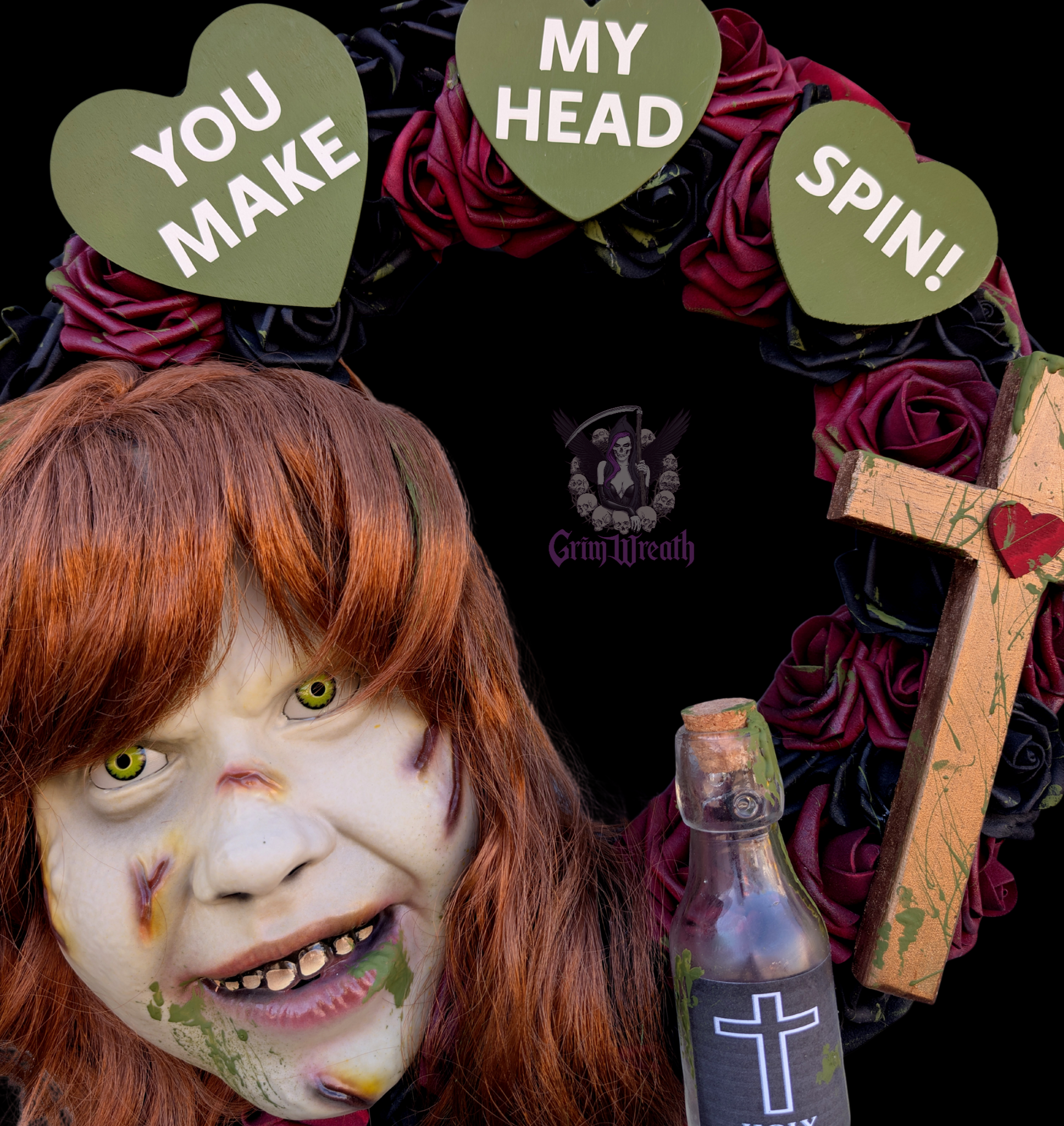 A dark twist on Valentine’s Day, this Exorcist-inspired wreath blends gothic romance with classic horror. Designed with dramatic, eerie details and a seductive crimson palette, it’s the perfect statement piece for horror lovers who like their love a little possessed. Ideal for Valloween décor or year-round macabre romance.